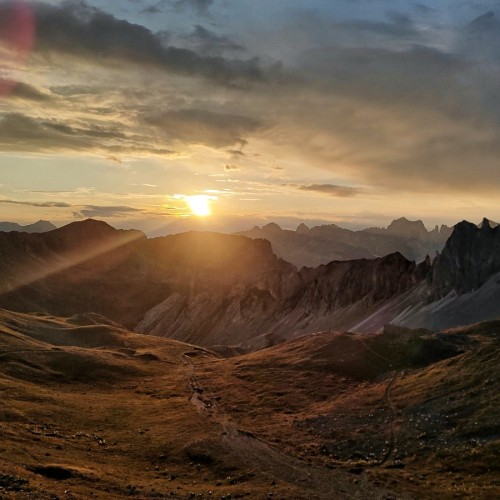 Partiti nei pressi di Passo San Pellegrino, ci immergiamo subito in un paesaggio da cartolina, attraverso l’idilliaco alpeggio di Fuciade, incorniciato da splendide baite in legno. Da qui, per sentieri meno battuti, saliamo verso il Passo delle Selle, dove troviamo il panoramico rifugio ad accoglierci. Prima del meritato riposo, possiamo esplorare la spettacolare cresta dove scopriamo le tracce della Grande Guerra, tra trincee e postazioni del fronte italo-austriaco. Proseguiamo in discesa, in un ambiente aspro e roccioso che si addolcisce man mano, trasformandosi in una valle silenziosa e immersa nel verde, con scorci meravigliosi sul Catinaccio. Attraversiamo boschi e pascoli dove non è raro incontrare cavalli allo stato brado, prima di raggiungere l’alta Val di San Nicolò. Dopo una breve deviazione per ammirare le cascate Jonta, risaliamo fino al rifugio, pronti per per rilassarci davanti a un tramonto mozzafiato.