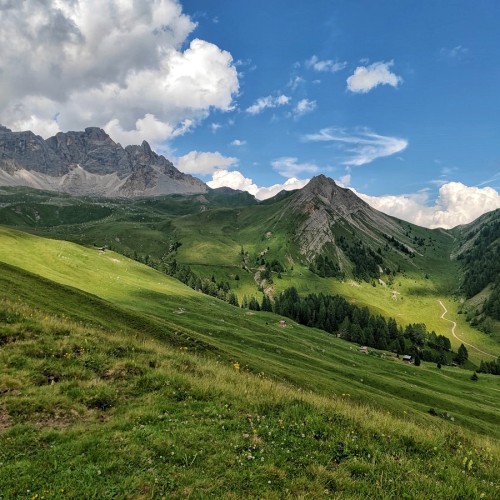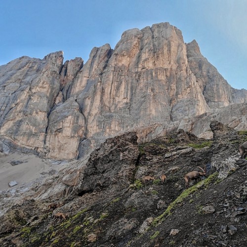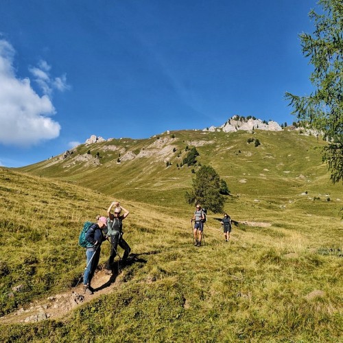 Siamo nel cuore del nostro trekking: la lunga salita verso il Passo Ombretta, che ci porta a superare quota 2700 metri sotto l’imponente parete sud della Marmolada. Circondati da giganti dolomitici come il Gran Vernel e il Sasso Vernale, ci muoviamo in un ambiente selvaggio, popolato da camosci e stambecchi. Superato il valico, una discesa tecnica tra ghiaioni e pendii erbosi ci porta al rifugio Falier, immerso in un angolo suggestivo di storia e natura. L’itinerario prosegue tra continui saliscendi, in un susseguirsi di ambienti sempre diversi, dove apprezziamo il verde intenso della vegetazione e le abbondanti fioriture. Indimenticabile lo spettacolo da Forcella dei Negher, dove si apre una vista incredibile sulle Pale di San Martino e sulla Valle del Biois. Il cammino ci guida infine verso la Baita dei Cacciatori, l’accogliente rifugio meta di giornata, dove ristorarsi con le delizie che offre la cucina non sarà difficile! Il finale inizia con una ripida salita, che si addolcisce verso il Passo di Forca Rossa, anche grazie agli ampi panorami. Da qui, la dolce discesa nella Valfredda ci regala un finale perfetto, permettendoci di assaporare ogni sensazione e fissare nella memoria la bellezza di questo viaggio tra le meraviglie delle Dolomiti.