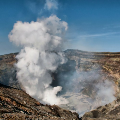La giornata è dedicata all’esplorazione del Monte Aso, una immensa caldera attiva. Attraversiamo a piedi e i suoi paesaggi spettacolari, caratterizzati da ampi crateri, dolci colline e vette vulcan...