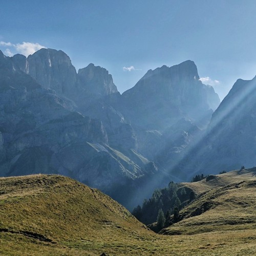 Siamo nel cuore del nostro trekking: la lunga salita verso il Passo Ombretta, che ci porta a superare quota 2700 metri sotto l’imponente parete sud della Marmolada. Circondati da giganti dolomitici come il Gran Vernel e il Sasso Vernale, ci muoviamo in un ambiente selvaggio, popolato da camosci e stambecchi. Superato il valico, una discesa tecnica tra ghiaioni e pendii erbosi ci porta al rifugio Falier, immerso in un angolo suggestivo di storia e natura. L’itinerario prosegue tra continui saliscendi, in un susseguirsi di ambienti sempre diversi, dove apprezziamo il verde intenso della vegetazione e le abbondanti fioriture. Indimenticabile lo spettacolo da Forcella dei Negher, dove si apre una vista incredibile sulle Pale di San Martino e sulla Valle del Biois. Il cammino ci guida infine verso la Baita dei Cacciatori, l’accogliente rifugio meta di giornata, dove ristorarsi con le delizie che offre la cucina non sarà difficile! Il finale inizia con una ripida salita, che si addolcisce verso il Passo di Forca Rossa, anche grazie agli ampi panorami. Da qui, la dolce discesa nella Valfredda ci regala un finale perfetto, permettendoci di assaporare ogni sensazione e fissare nella memoria la bellezza di questo viaggio tra le meraviglie delle Dolomiti.